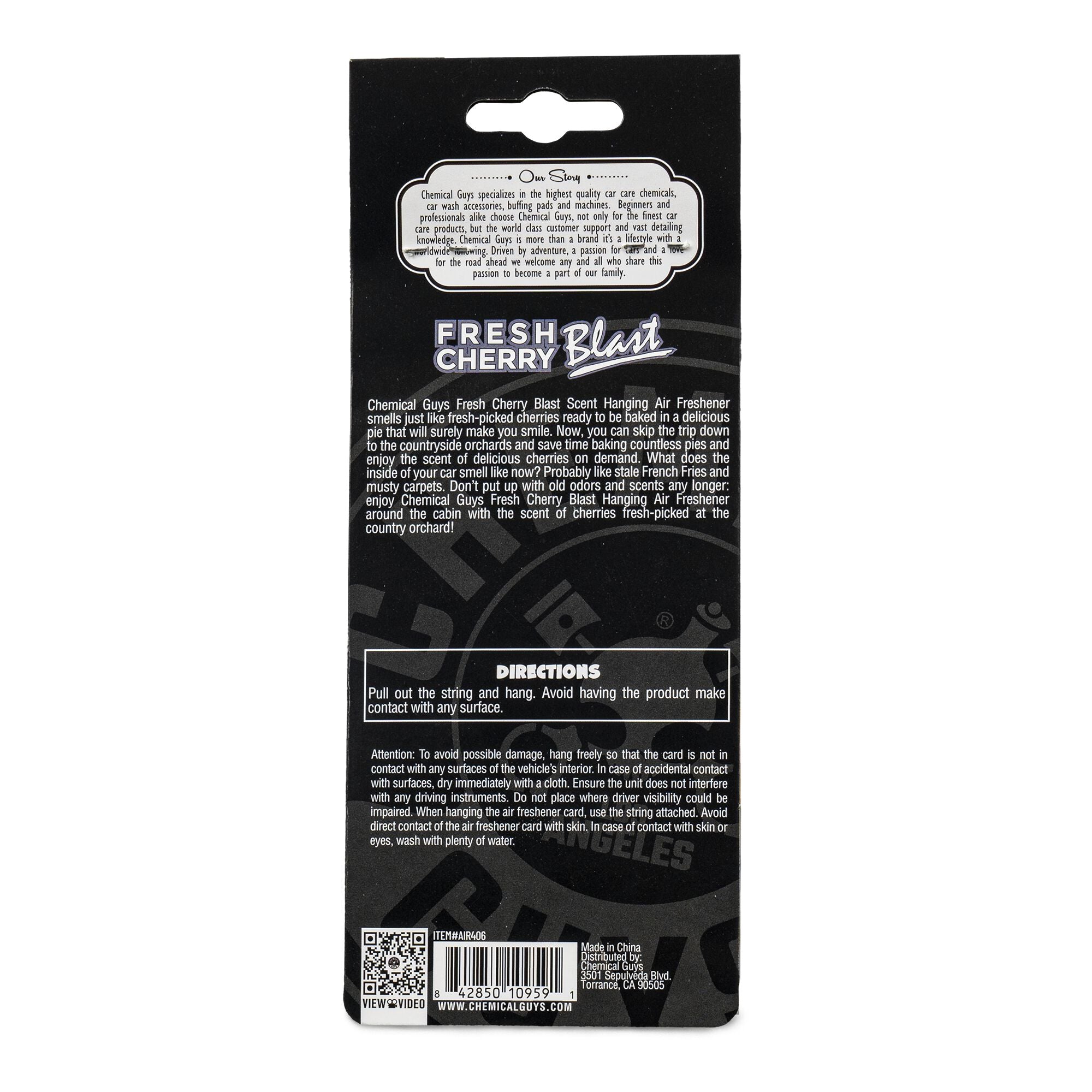 Turn every drive into a delightful journey with our Fresh Cherry Blast Hanging Air Freshener 3-Pack. Embrace the sweet and tangy aroma of ripe cherries that instantly refresh your car interior. Whether commuting to work or embarking on a road trip. let the deep and indulgent scent uplift your mood and create a pleasant driving atmosphere.?