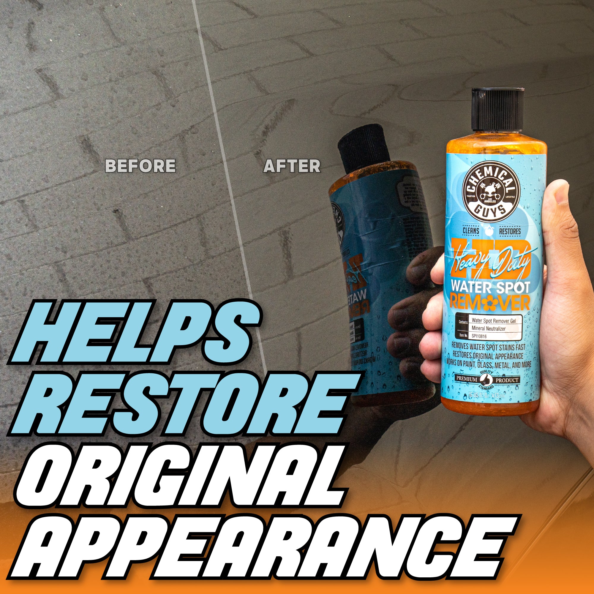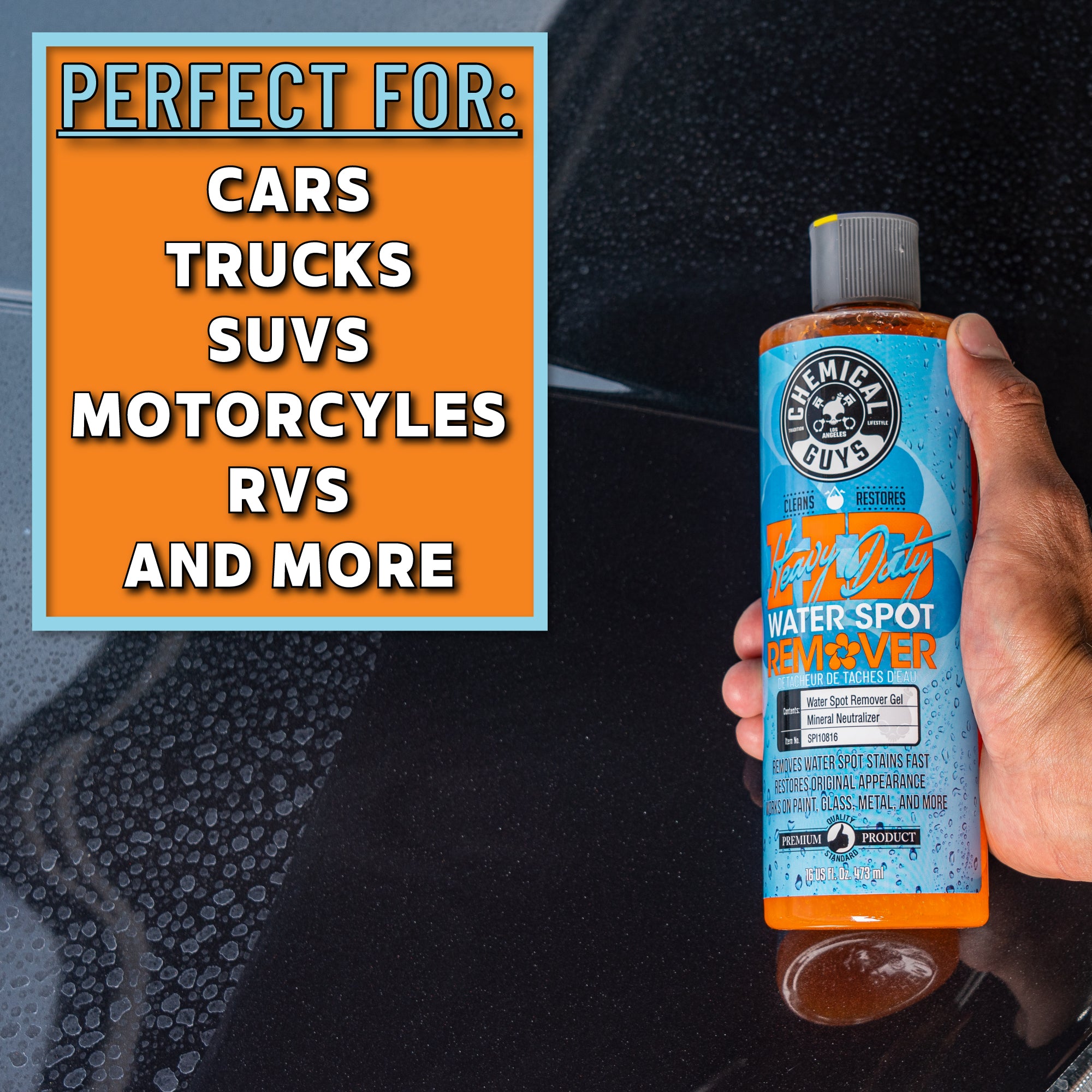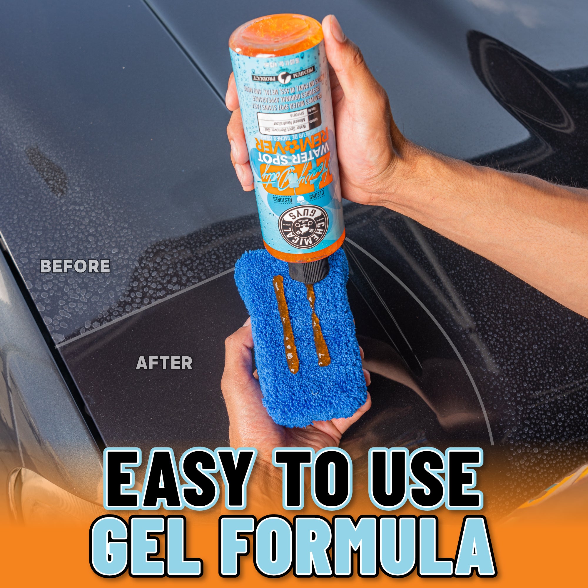 Heavy Duty Water Spot Remover is a specially formulated gel that tackles tough water stains and hard water spots. Its easy application makes it perfect for various surfaces. ensuring a streak-free finish.?Use Heavy Duty Water Spot Remover whenever you notice water stains or hard water spots on your vehicle’s paint. glass. or other surfaces. It’s especially effective after washing your car. as it can remove any residual spots that washing alone couldn’t eliminate.?