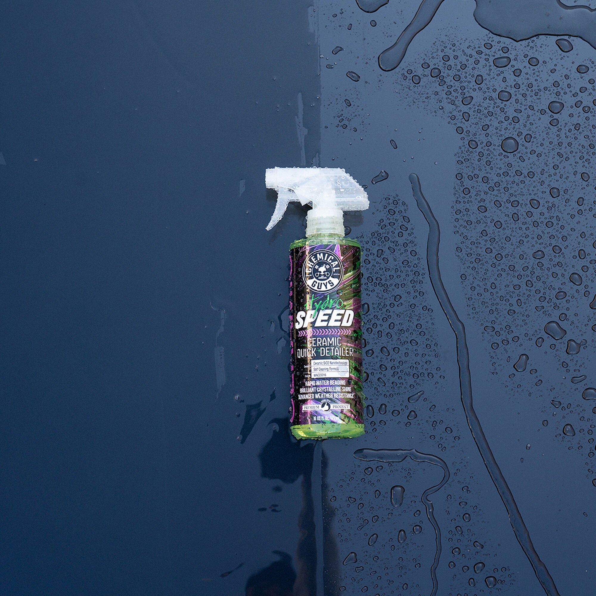 Introducing HydroSpeed: the ultimate car spray infused with hydrophobic polymers and SiO2 nanoparticles. Easy to apply. it delivers a stunning shiny finish. shields your vehicle against all weather conditions. and promotes rapid water beading.