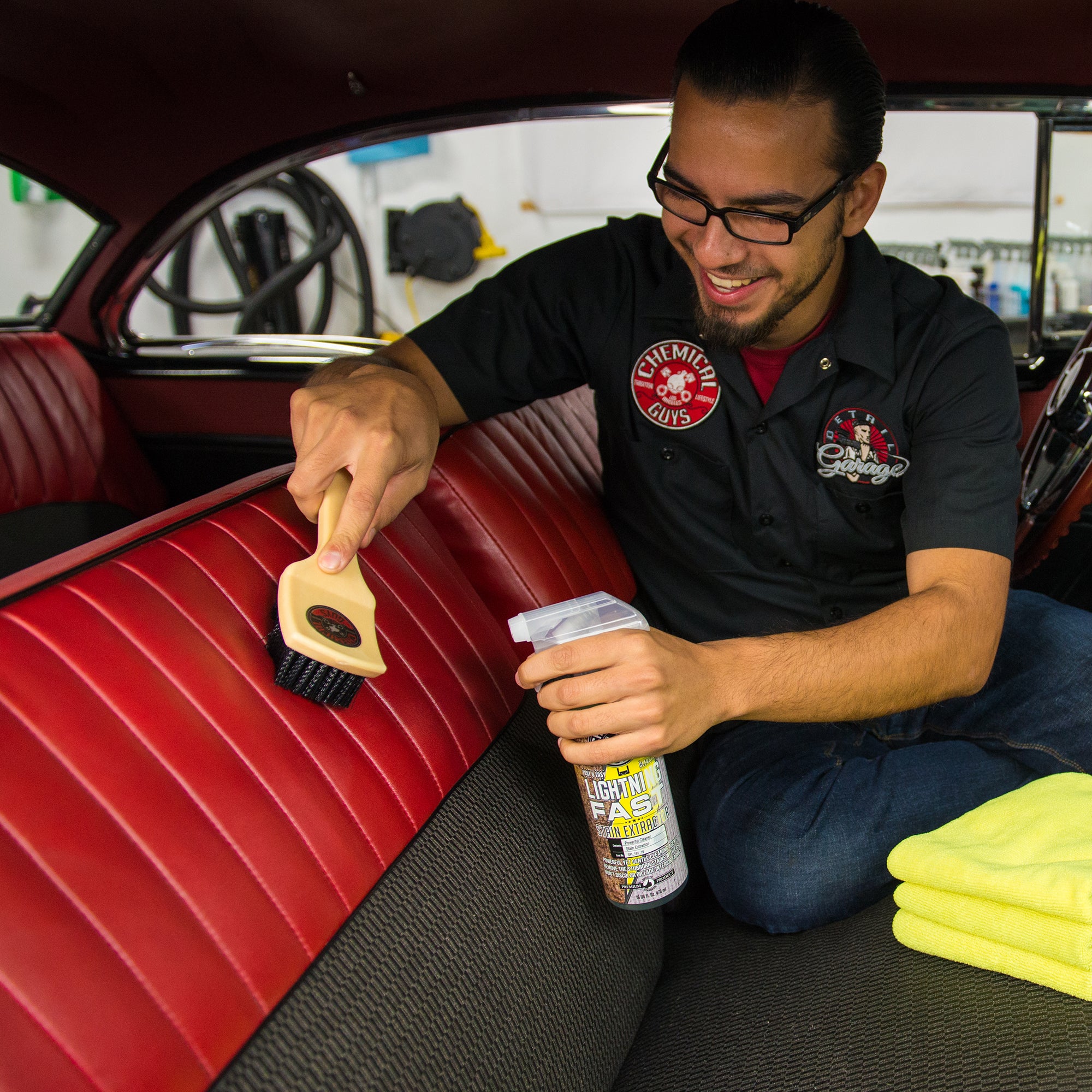 The Chemical Guys Nifty Interior Detailing Brush is built to tackle tough dirt and grime with its durable. densely packed bristles. Designed for efficient cleaning. it lifts debris from carpets. floor mats. and trunk liners with ease. The ergonomic handle ensures a comfortable grip. making detailed cleaning tasks effortless. Perfect for both automotive and home use. this brush restores a fresh. spotless look to your vehicle’s interior.